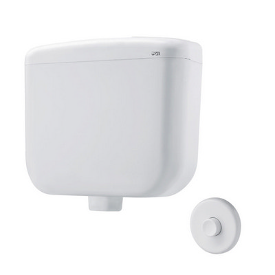 Cassetta di scarico, con pulsante esterno a distanza pneumatico completo di tubetto e canalina, adatta per bagni a norma per disabili.
