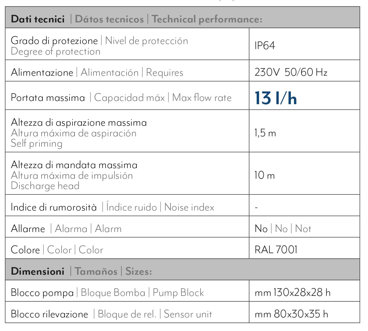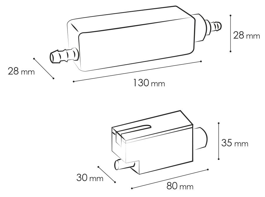 Per il tubo di mandata e per il collegamento serbatoio-pompa usare tubo 6×9 mm standard (non fornito di serie)