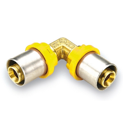 I raccordi per il tubo MULTI GAS TIEMME sono costituiti da un corpo in ottone CW 614/CW 617, da una bussola in acciaio inox a pressare e da una ghiera in nylon.